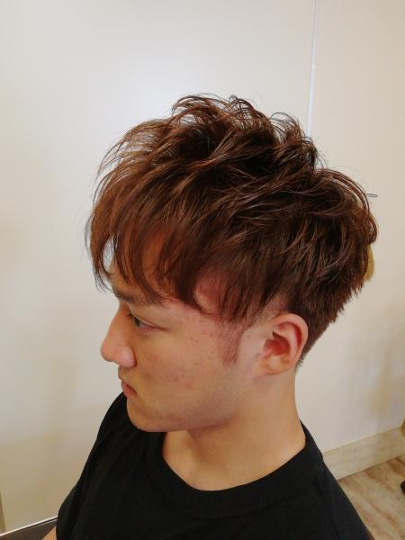 ツーブロックに刈り上げてワックスで無造作に仕上げました。