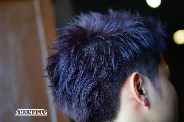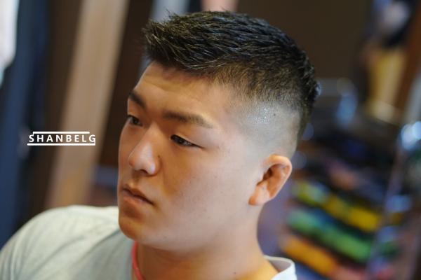 ピンパーマにてやり過ぎないパーマ、横と後ろはフェードをつけながらの2ブロックとなりますのでかぶさる髪に馴染みます。フロントも上向きにかけてあるのでセットがしやすいスタイルとなります